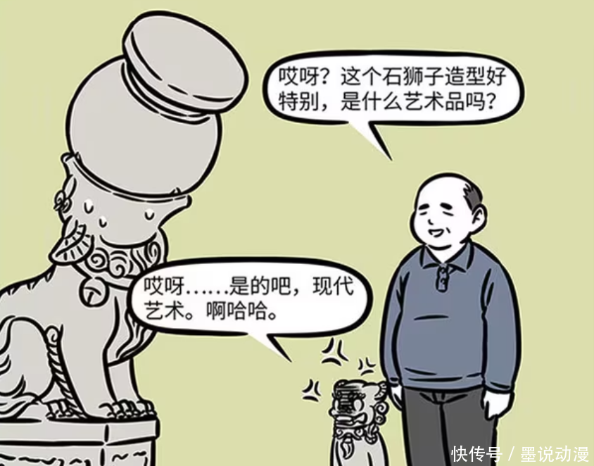 结果就变成这只石狮子用石墩代替石球的情况,只能说这只石狮子的力量惊人,不仅可以咬住这个石墩,还能将它顶起来。领导看到如此情景,非但没有怪这只石狮子,还觉得造型很特别,是什么艺术品吗?保安队长只能解释,这就是现代艺术。